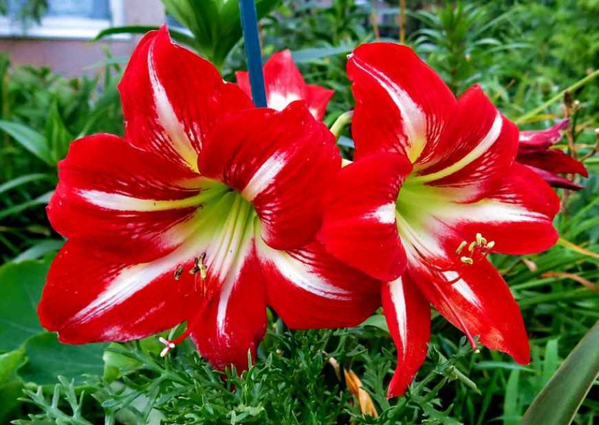 Гиппеаструмы — многолетние цветы, их высаживают в открытый садовый грунт весной, когда земля уже прогрелась, а на зиму луковицы выкапывают