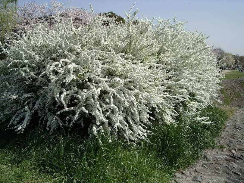Спирея неприхотлива в уходе, иногда в силу погодных условий из-за недостатка света и тепла вырастает с меньшим количеством цветков, но неизменно остается красивой. Существуют весеннецветущая и летнецветущая спиреи. У весенних, цветочки преимущественно белого цвета, образуются на побегах второго года, в мае месяце куст становится усыпанным красивыми соцветиями: