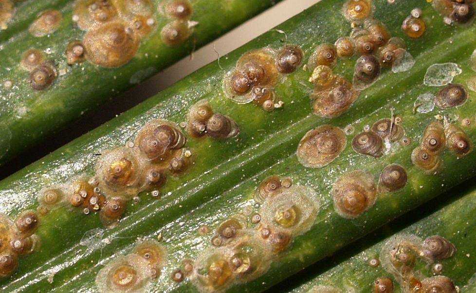 - Коричневато-желтоватые бугорки на стебле говорят о заражении щитовкой.