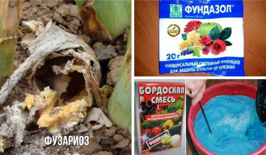 Чаще всего ирисы поражаются фузариозом или прочими видами гнили. При первых признаках недугов заболевшие экземпляры уничтожают, а остальные растения поливают раствором «Фундазола». Данный препарат также применяют в качестве профилактического средства для обработки корневой системы цветков перед их высадкой в грунт. Среди народных методов бороться с гнилью помогает опрыскивание посевов однопроцентным раствором бордоской жидкости.