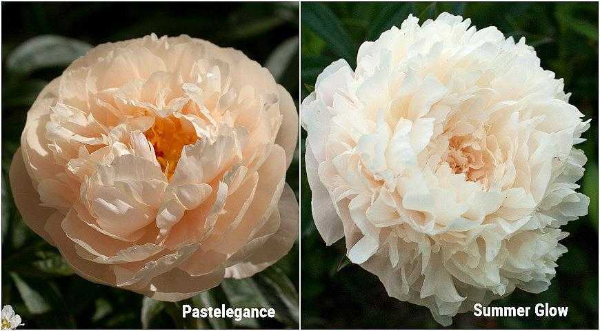 Кремовый пион сорта Pastelegance и розовый пион сорта Summer Glow