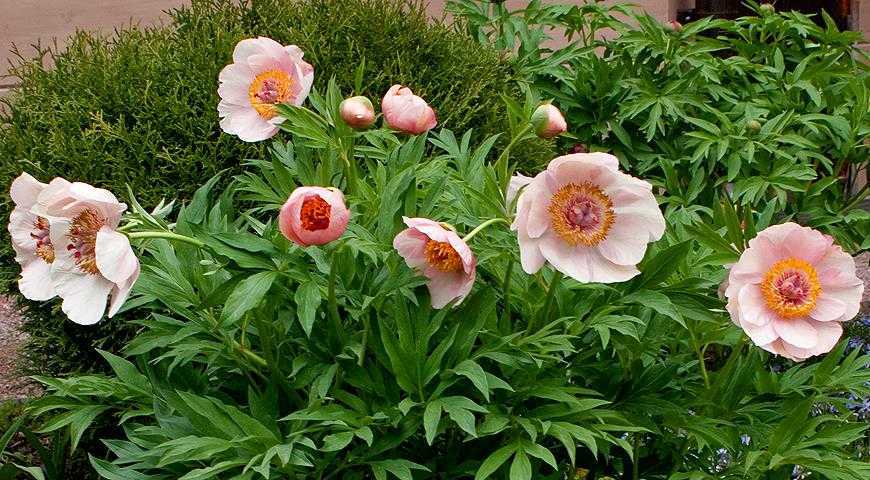 «Соседей» для пионов подбирают с учётом того, чтобы их потребности в освещённости, влажности и других параметрах совпадали. Из большого разнообразия можно предложить такие растения:
