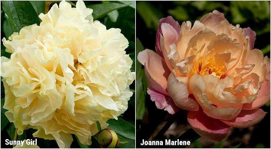 Желтый пион Sunny Girl и кремовый пион сорта Joanna Marlene