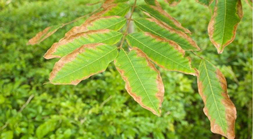 Иначе называется белая пятнистость. Заболевание, приводящее к массовому усыханию и опаданию листьев. Уже в последних числах мая можно наблюдать первые признаки присутствия болезни. Проявляется в виде едва заметных пятнышек коричневого и красного цвета. Первое появление на листьях. Предпочтение отдают месту между прожилками.