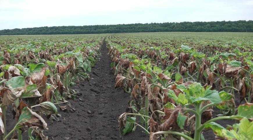 подсолнечник, пострадавший от применения десиканта