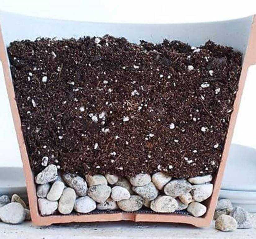 Чтобы дренажные отверстия в дне горшка не засорились, опытные цветоводы прикрывают дренирующий слой небольшим кусочком строительной сетки.