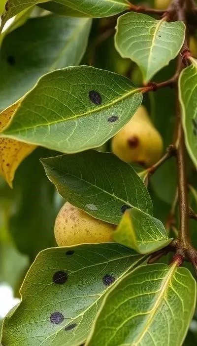 Септориоз, или пятнистость листьев груши, проявляется в виде округлых или угловатых пятен на листьях, часто с темной каймой. Пятна постепенно увеличиваются, приводя к пожелтению и опадению листьев. Заболевание особенно активно развивается во влажную погоду.