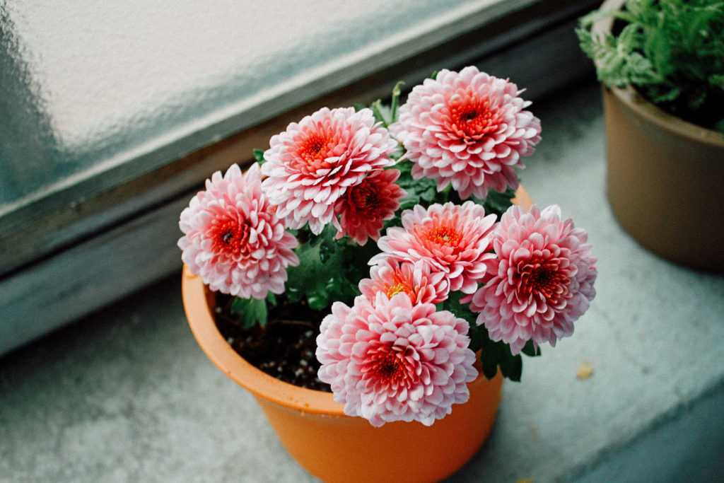 Столкнувшись с покупкой комнатного растения, нужно внимательно осмотреть его. Здоровая хризантема — с плотными хорошо развитыми стеблями, зелёными без повреждений листьями и желтизны. Цвет стебля яркий с равномерной зелёной окраской. Коричневых или серых пятен быть не должно.