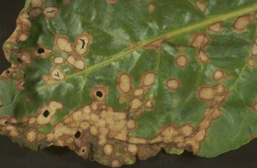 На ботве появляются пятна желтого и бежевого цвета. Возбудителем фомоза является гриб Phoma betae (фома свеклы), который может спровоцировать опасную сухую гниль корней при зимнем хранении.