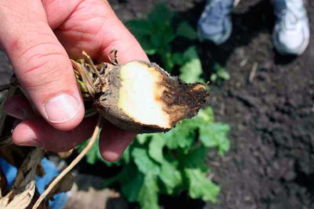 главный признак – ботва скручивается, чернеет и отмирает, что приводит к гибели свеклы;