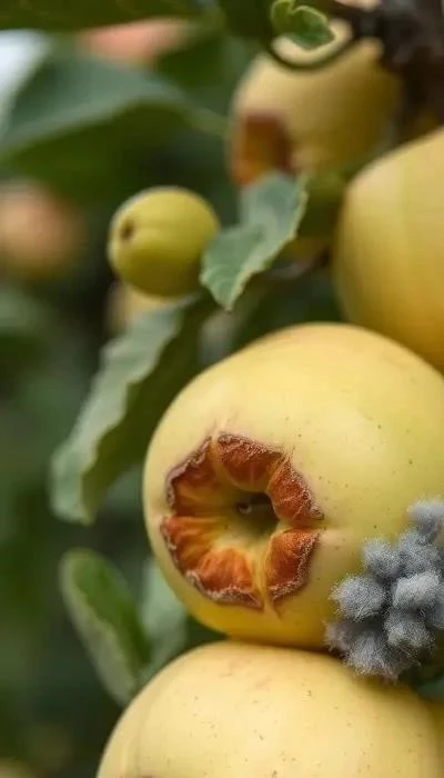 Плодовая гниль – грибковое заболевание, поражающее плоды яблони. На плодах появляются вдавленные, коричневые пятна, которые быстро увеличиваются и охватывают всю поверхность плода. Пораженные плоды загнивают и опадают. Важно убирать опавшие плоды и проводить профилактические опрыскивания.