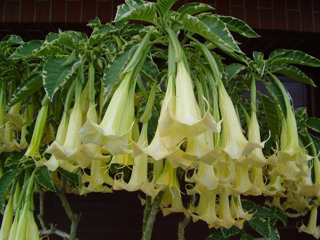 Никак не можете вспомнить, как называется цветок в виде колокольчика, который очень похож на дерево? Возможно, речь идет о бругмансии из семейства пасленовых? Другое название культуры – «дурманящее дерево». Такое необычное наименование оно получило благодаря тому, что в составе ее лепестков имеется сильное одурманивающее вещество, которое используется некоторыми народными целителями в лечебных целях.
