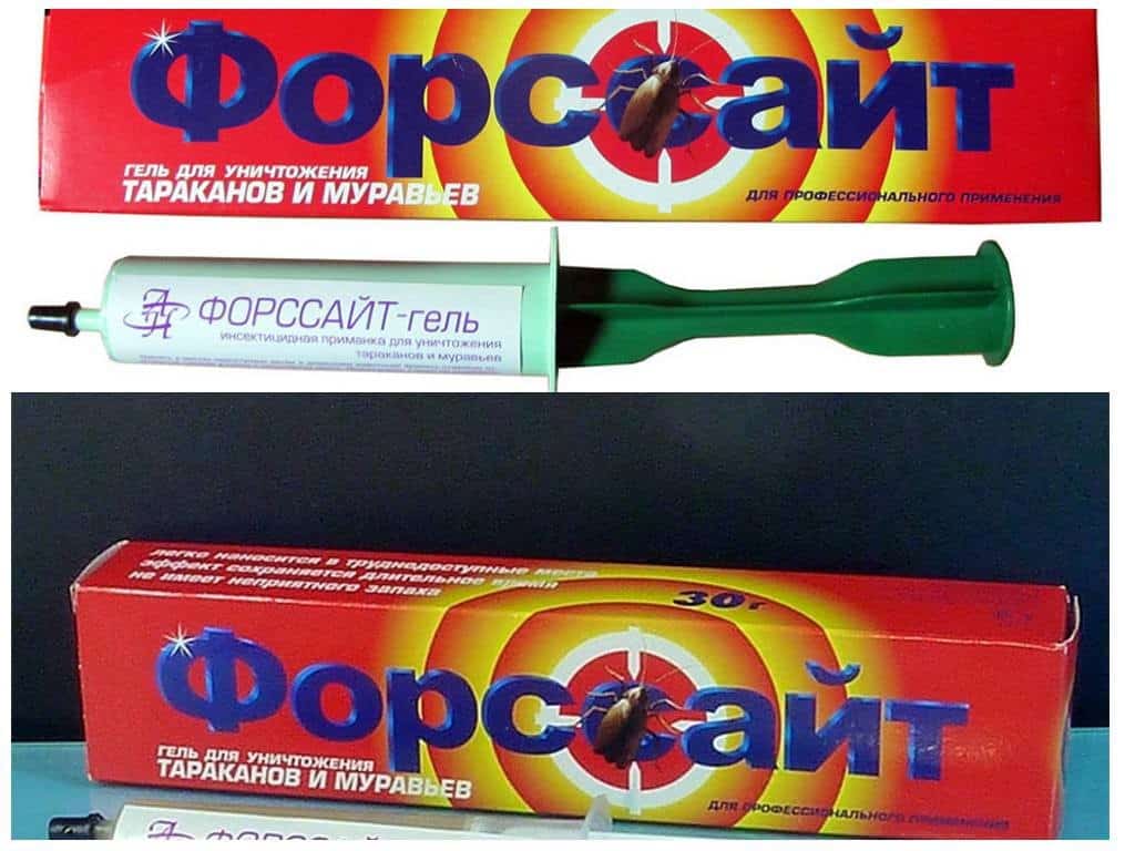 Гель от тараканов Форсайт продается по 30 г. в готовом шприце. Активное вещество в этом средстве – фипронил или перметрин 20%.