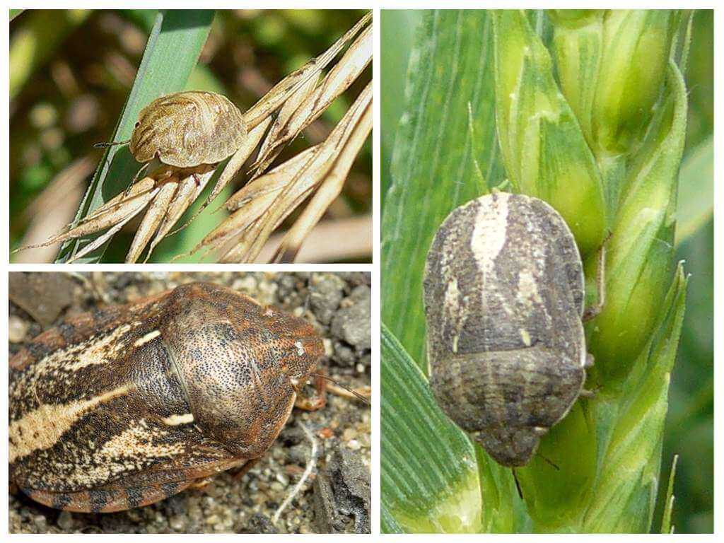 Еще одно заметное семейство клоповых — щитники-черепашки, они также имеют свой особый окрас, отдаленно напоминающий узор на панцире черепахи, за что насекомые и получили свое имя. Представитель семейства клоп вредная черепашка — опасный вредитель злаковых культур. Пережившие зимовку клопы высасывают сок из свежих злаковых побегов, а их личинки уничтожают злаки, вызывая распад клейковины. Получить муку из поврежденных злаков уже не удастся. Борьба с клопом вредная — актуальная задача для сельских хозяйств и ферм, занимающихся выращиванием злаковых культур. Использовать для уничтожения вредителя можно профилактические меры и инсектициды.