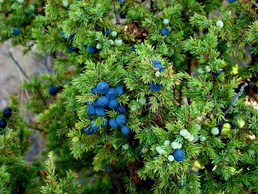 В апреле-июне на можжевельнике появляются мужские шишки жёлтого цвета, а следом за ними женские, сферические, диаметром до 1 см. Именно их называют можжевеловыми ягодами. Сразу после появления они зелёные, но к осени приобретают синий или чёрный цвет. Можжевеловые ягоды широко используются для приготовления джина.