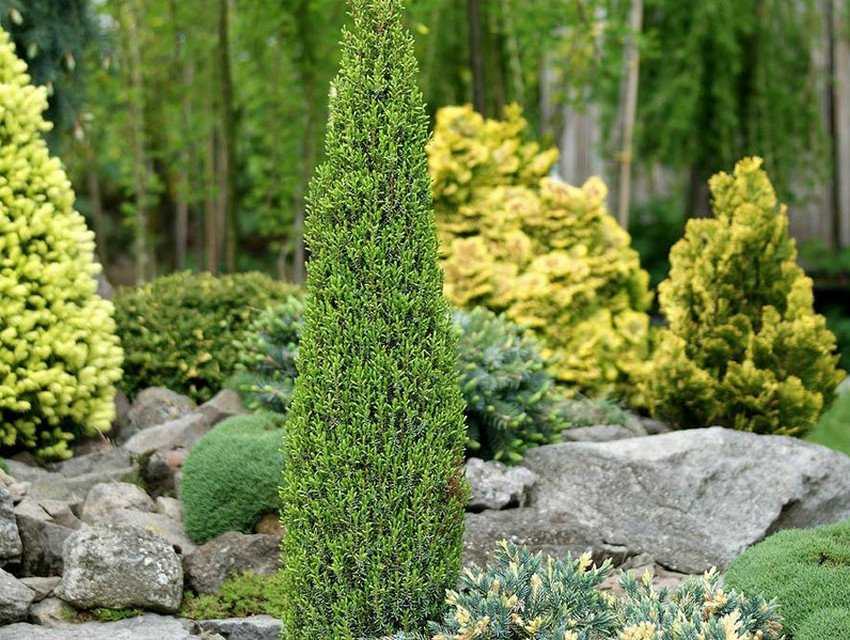 Важно!При посадке не одного растения, а создания целой рощи хвойных кустов между ними необходимо выдержать расстояние 0,5–0,8 м