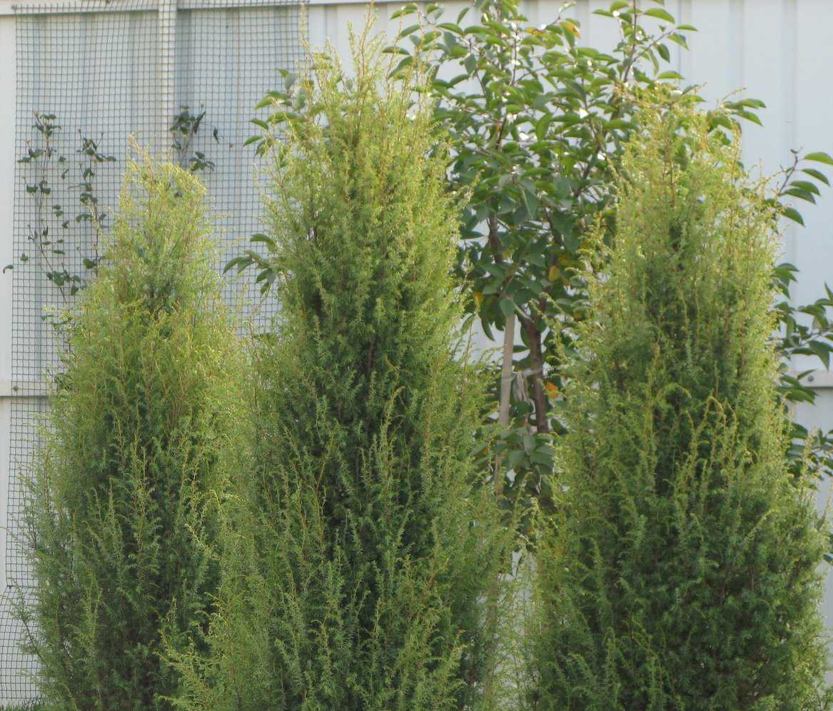 Этот можжевельник по форме кроны похож на кипарис, поэтому его часто используют при создании живой стены.