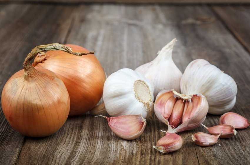 - Луковый или чесночный настой либо разложить на грядке их перья (зелень) .