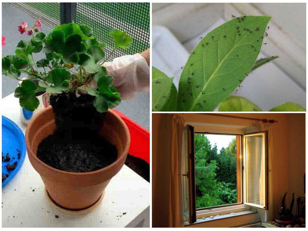 - Под утро создайте лёгкую прохладу в помещении, где находятся цветы, например, выключив батареи или открыв окно. Пониженная температура помешает мушкам взлетать. Далее проведите процедуру описанную ниже.