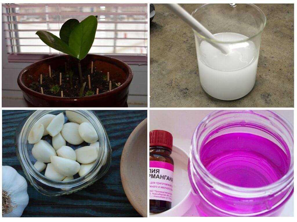 Марганцовка. Это отличное средство для дезинфекции почвы, которое может помочь избавиться от насекомых. Достаточно развести марганцовку до светло-розового раствора и полить им обильно грунт. Когда через несколько дней верхний слой земли хорошо просохнет, процедуру нужно будет повторить.