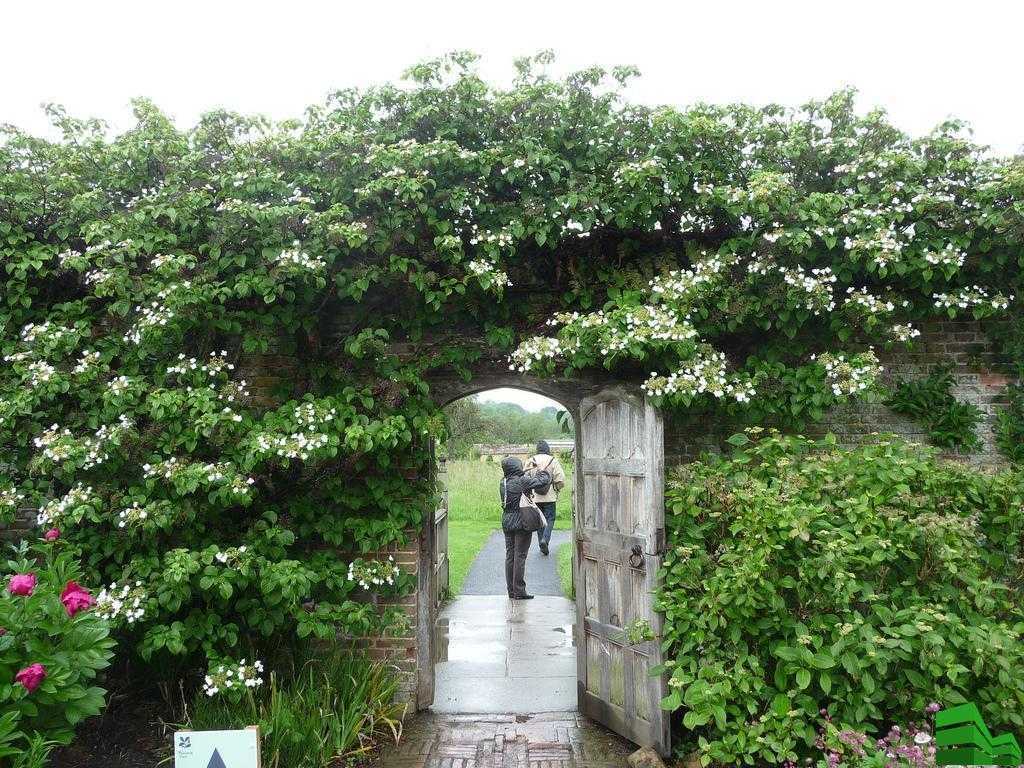 Гортензия в ландшафтном дизайне встречается гораздо реже других растений. Она отличный вариант для живой изгороди. Ее побеги очень быстро поднимаются по опорам вверх. Белые ароматные цветки выгодно оттеняют темно-зеленые листья. Лучшим образом для нее подойдут гладкие ограждения, а не сетчатые. Весьма непритязательная она не претендует на особо тщательный уход: