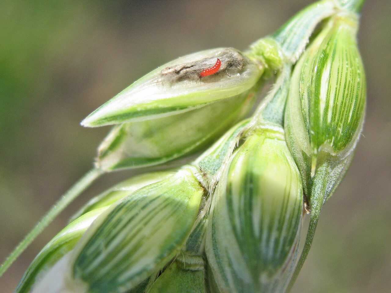 Личинки внутри яйца развиваются примерно восемь дней, затем выходят в поисках пищи. При помощи особых слюнных желез, выделяющих специфический фермент для расщепления тканей растений, поглощают зачатки будущих зерен пшеницы.