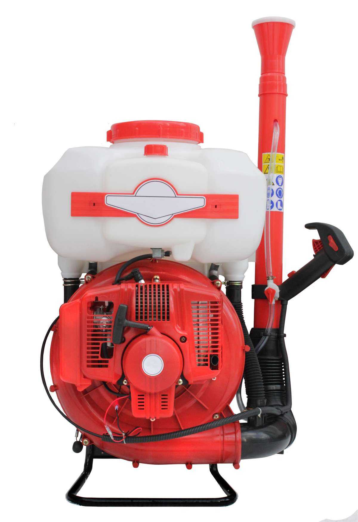 Фермерам, занимающимся растениеводством в крупных масштабах, подойдут моторизированные опрыскиватели, переносимые за спиной или перевозимые на колесах. Данный вид распылителей работает от бензиновых двигателей, мощность которых варьируется от 2 до 5 лошадиных сил. Чем мощнее двигатель, тем дальше и выше выбрасывается струя раствора. Среди опрыскивателей с бензиновыми моторами можно найти модели, работающие не только с жидкими препаратами, но и с порошкообразными. Процесс распыления удобрений или ядохимикатов максимально автоматизирован, поэтому человеку не приходится прикладывать много усилий при работе с данным садовым оборудованием.