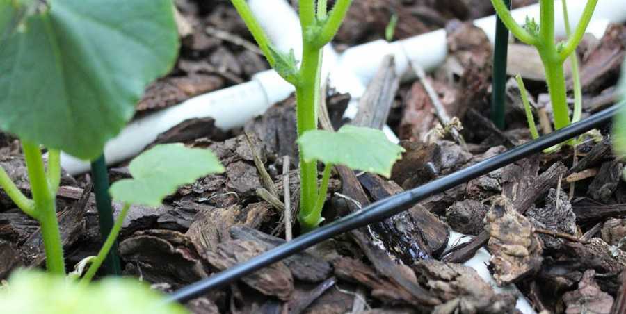 Ответвления капельного полива соединяют с капельными линиями по всей длине грядки. Для капельных линий можно взять капельную ленту с отверстиями или трубу с капельницами.