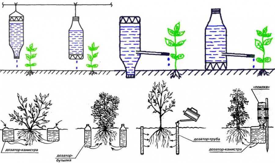 Нужны бутылки по 5 литров. На высоте двух сантиметров от дна тары делаем проколы иглой для ремонта обуви, закапываем сооружение в междурядья грядки на половину.