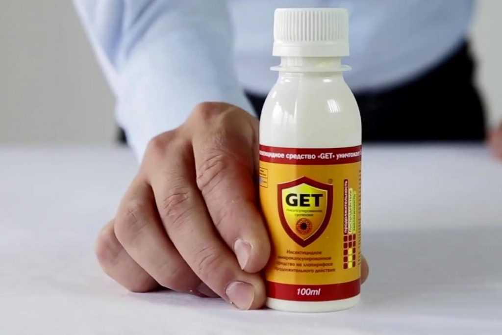 - Гет – эмульсия высокой концентрации, содержит органофосфат (хлорпирифос). Преимуществом является пролонгированное действие – инсектицид высвобождается на протяжении нескольких месяцев.